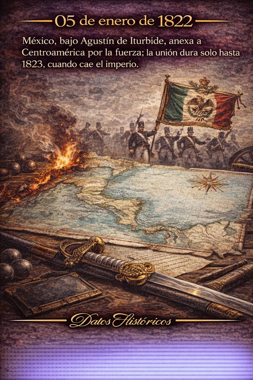 México, bajo Agustín de Iturbide, anexa Centroamérica por la fuerza en 1822, una unión breve que termina con la caída del imperio en 1823.