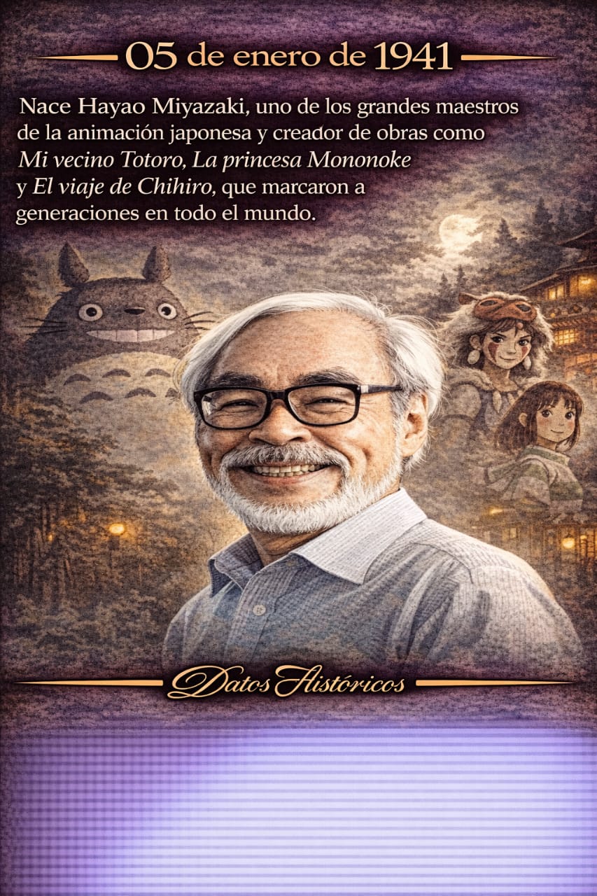 Nace Hayao Miyazaki en 1941, director japonés que revolucionó la animación con obras como Mi vecino Totoro, La princesa Mononoke y El viaje de Chihiro.