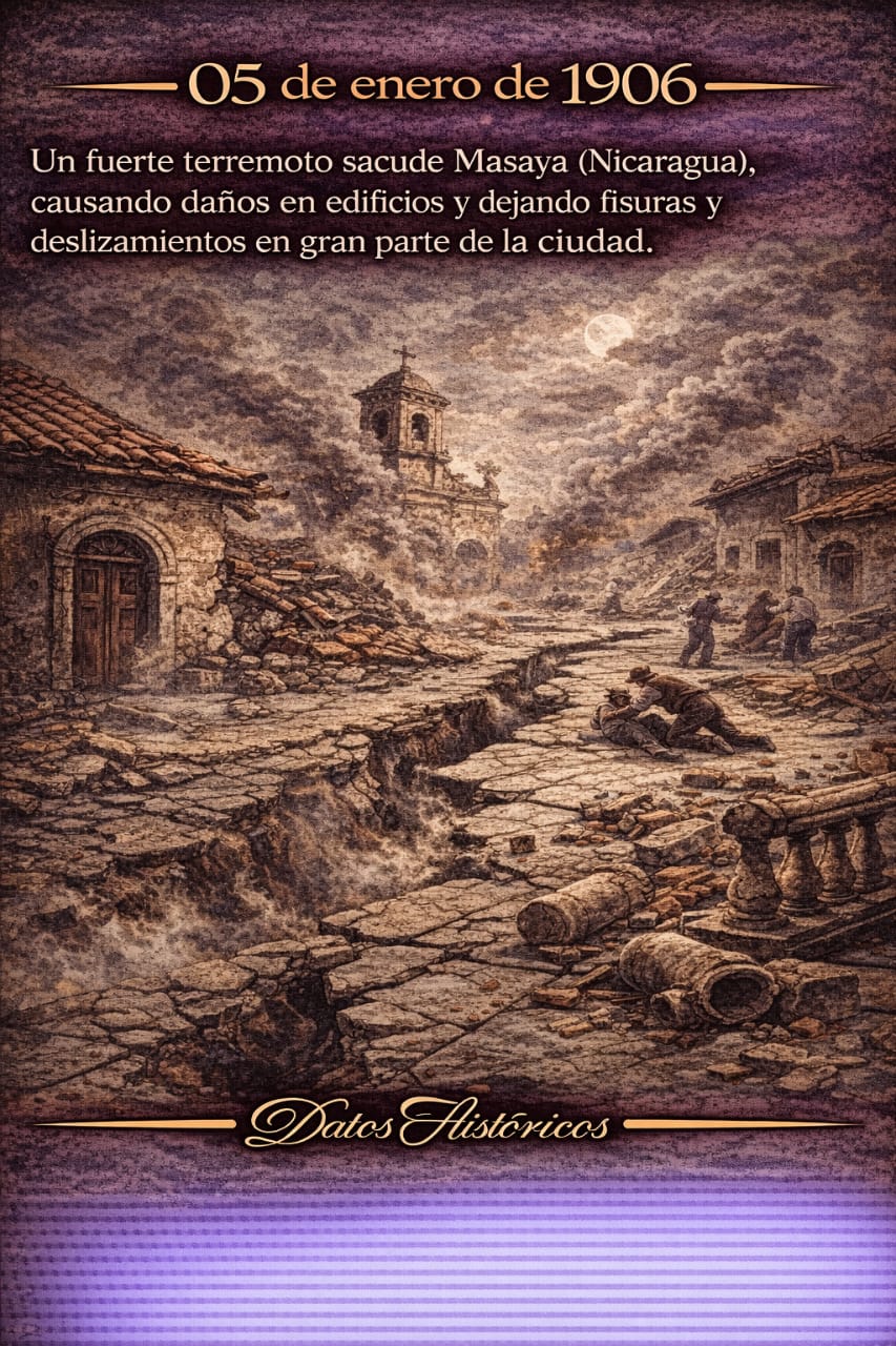 Terremoto de 1906 en Masaya, Nicaragua, que provoca daños estructurales, grietas en el suelo y deslizamientos en gran parte de la ciudad.