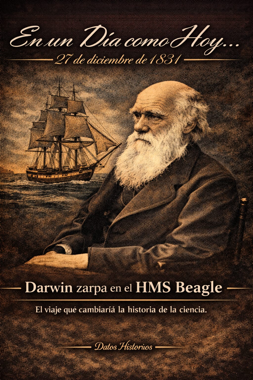 Charles Darwin inicia su viaje en el HMS Beagle en 1831, expedición que sentó las bases de la teoría de la evolución.