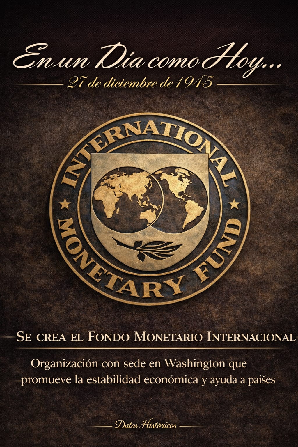 Creación del Fondo Monetario Internacional en 1945 para promover la estabilidad financiera y la cooperación económica entre países.