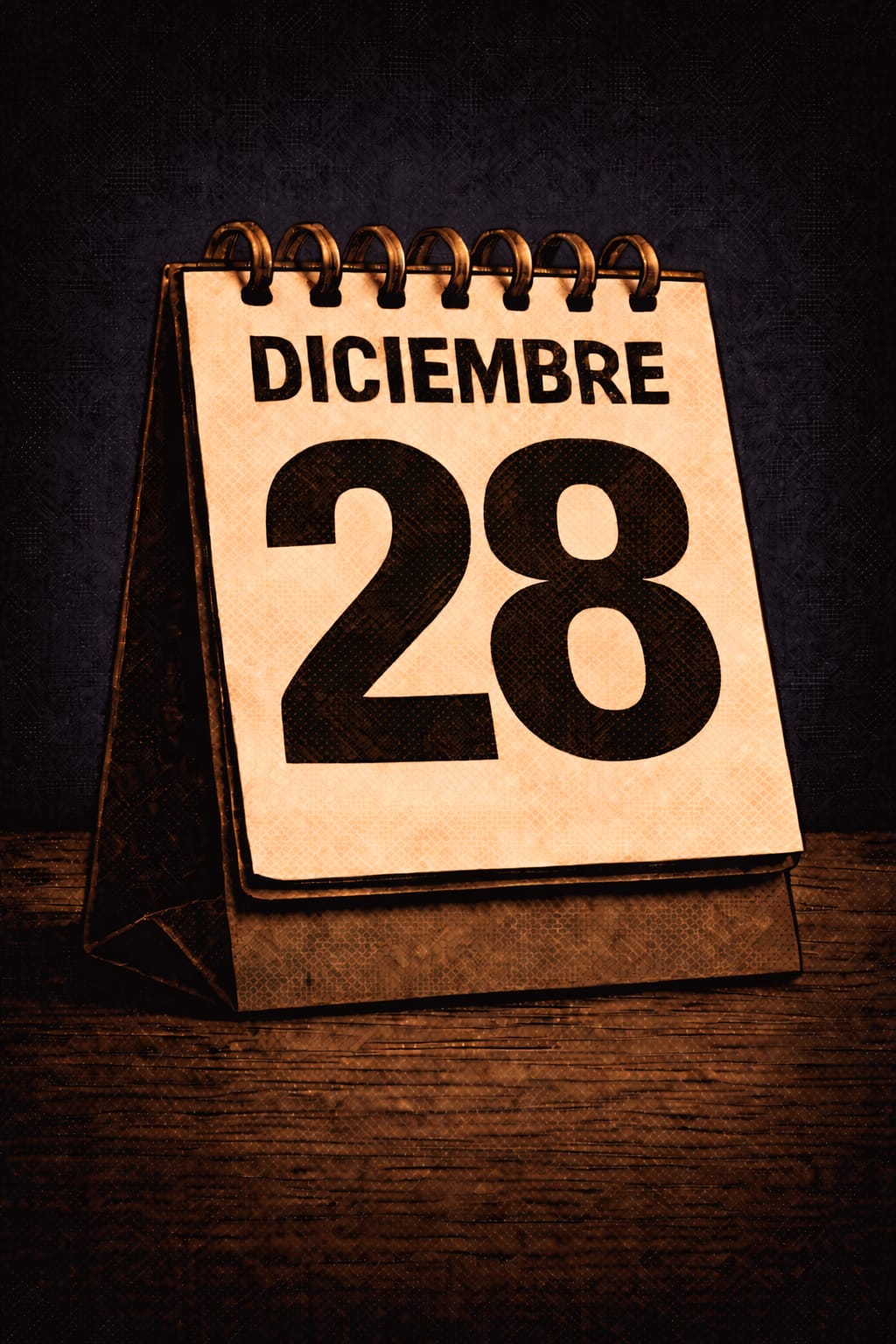 Calendario vintage marcando el 28 de diciembre como fecha histórica.