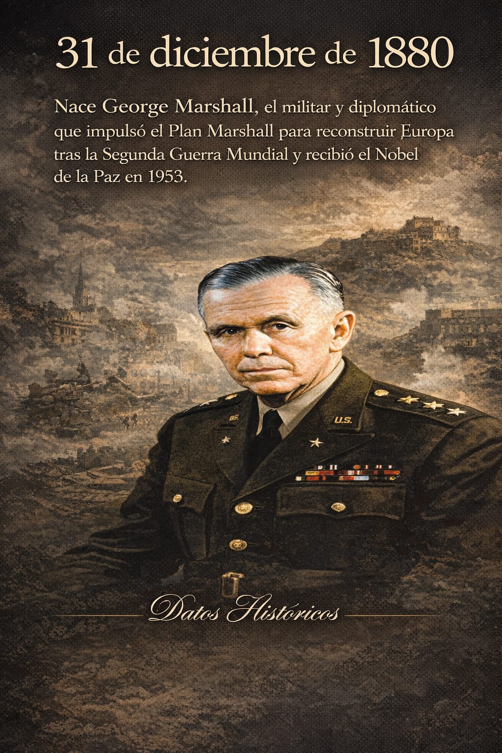 Nacimiento de George Marshall en 1880 impulsor del Plan Marshall y premio Nobel de la Paz en 1953
