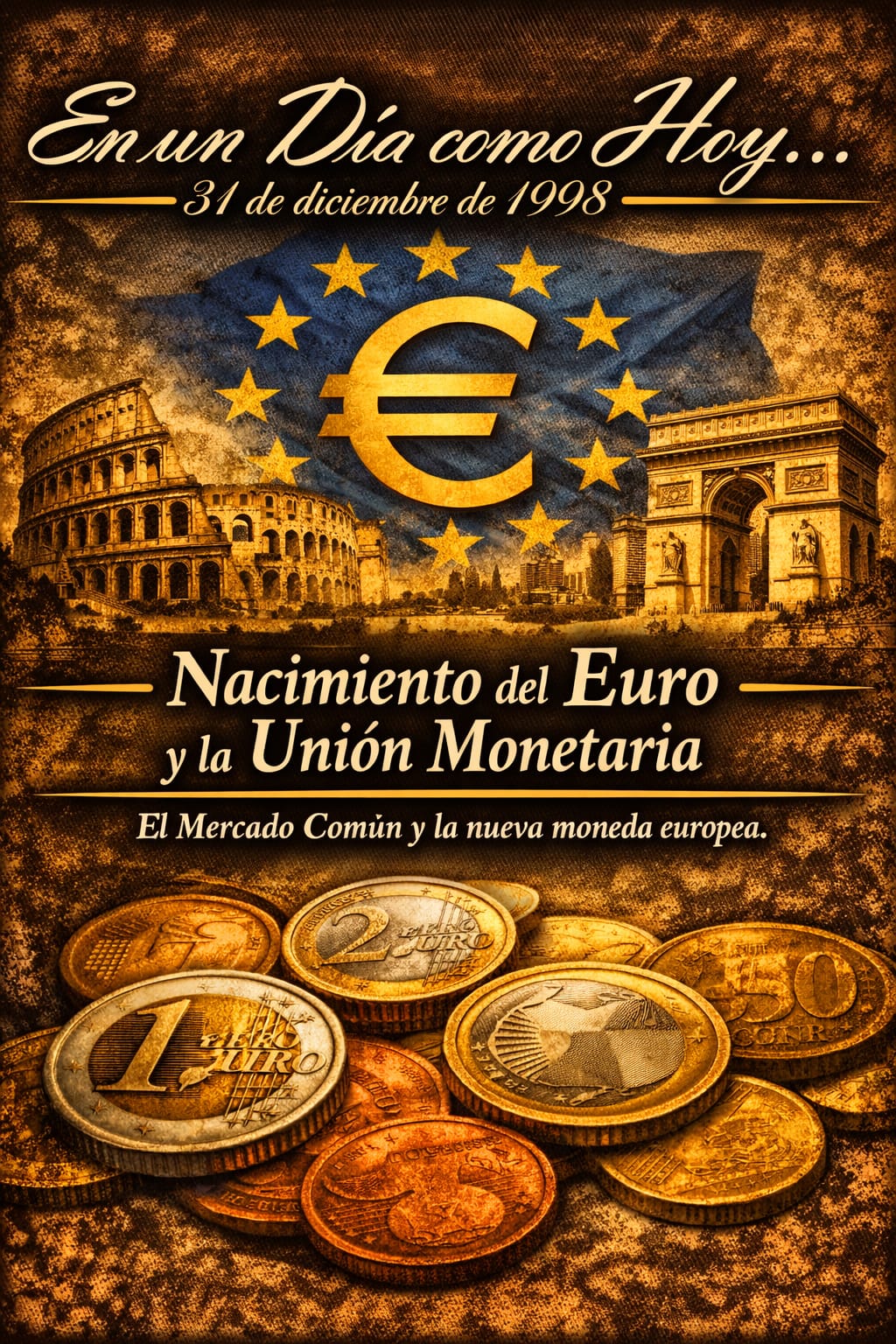 Nacimiento del euro en 1998 y creación de la unión monetaria europea como nueva moneda común